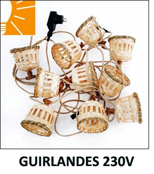 La guirlande AURORA 230V est idéale pour apporter une touche décorative à votre extérieur grâce à ses diffuseurs de lumière en fibres naturelles. Le câble est entouré d'une corde en fibres de jute pour une touche naturelle sans compromettre les propriétés électriques de la guirlande. Composée de 10 ampoules diffusant une lumière chaude, sur une longueur de 5m avec la possibilité d'unir 4 guirlandes entre elles.
