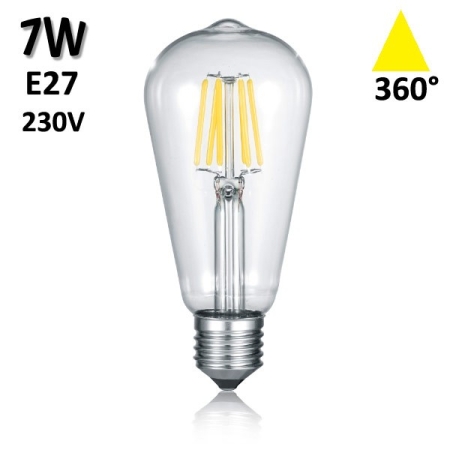 Ampoule Edison TRIO avec le filament LED. Le verre Ø64mm est de finition claire, offrant une température de couleur trés chaude 2700K.