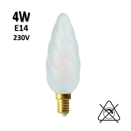 Ampoule filament LED GIRARD SUDRON. Lampe flamme torsadée, finitions claire, mate, ambrée, petit culot à vis E14, puissances, 4W (=30W), tension 220V-240V, températures de couleur 2700K (blanc chaud). Ampoules GIRARD SUDRON 713199 713200 713201