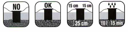 - Poser un drain efficace afin d'éviter toute stagnation de l'eau, avec un minimum de 25 centimètres de gravier en dessous de l'installation. Un drain efficace doit permettre d'absorber jusqu'à 10 litres d'eau en 15 minutes.