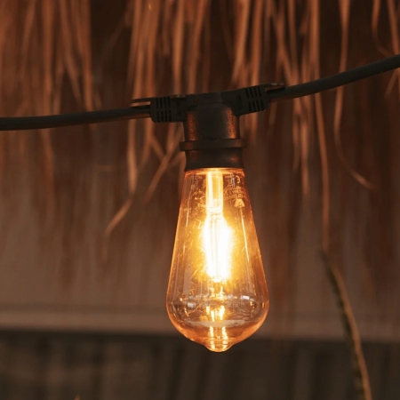 Si vous désirez un éclairage doux, nous vous conseillons d’opter pour deux packs de 10 ampoules LED Edison ambrées 1,5 W NEW GARDEN.