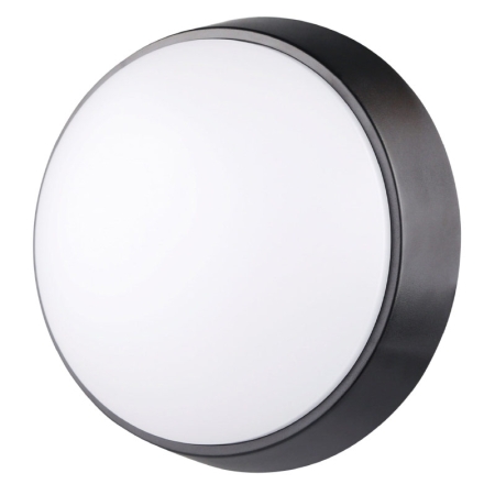 Hublot SG TARDO, diamètre de 325 mm. Ce luminaire mural LED de 14W, de couleur graphite, est muni d'une casquette. Les quatre ouvertures disposées autour du contour permettent un éclairage indirect. Son diffuseur plat en polycarbonate opale, résistant aux UV, assure une diffusion uniforme de la lumière, offrant ainsi une ambiance agréable et sécurisée. Sa conception robuste en fonte d'aluminium avec une finition en poudre polyester garantit une durabilité exceptionnelle, soutenue par une garantie de 10 ans contre la corrosion. Certifié IP65, il peut être installé aussi bien à l'intérieur qu'à l'extérieur.